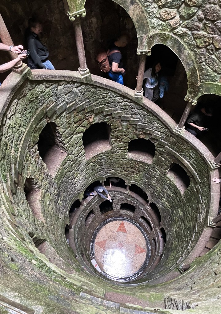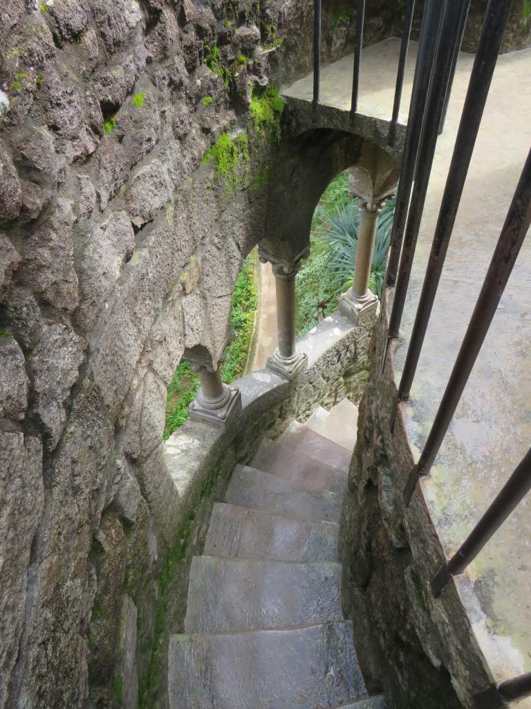 We were headed towards Quinta da Regaleira and the Initiation Well. Quinta da Regaleira, celebrates Portugal’s unique historical connection to the mysterious Knights Templar. Quinta da Regaleira is a postcard-perfect mix of Gothic, Egyptian, Moorish and Renaissance architecture. But it’s what lies beneath the palace’s gardens that truly sets the estate’s design apart. A pair of wells, called Initiation Wells, spiral down deep within the earth, like inverted towers. The wells were never used to collect water. Instead, in fact, it was never built to serve as a water resource at all. It was actually built for secret ceremonial purposes, as a part of a mysterious initiation ritual within the Knights of Templar tradition. It has a spiral staircase of 27m to the bottom.