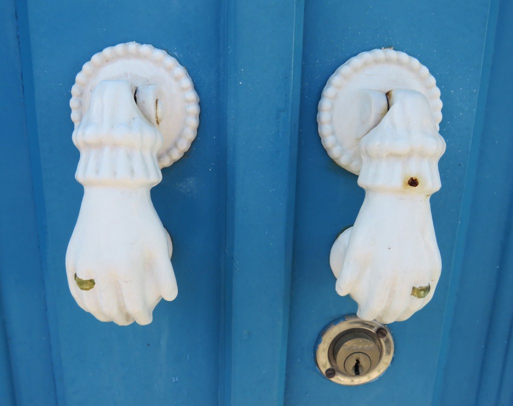 Everything has a story. These door knockers represent the home of a wealthy married couple. There is a knocker for the man and a knocker for the woman. Even the knocks had their own meanings. Often times you could tell who was knocking and the message they were sending by the knocks and codes that were being used.