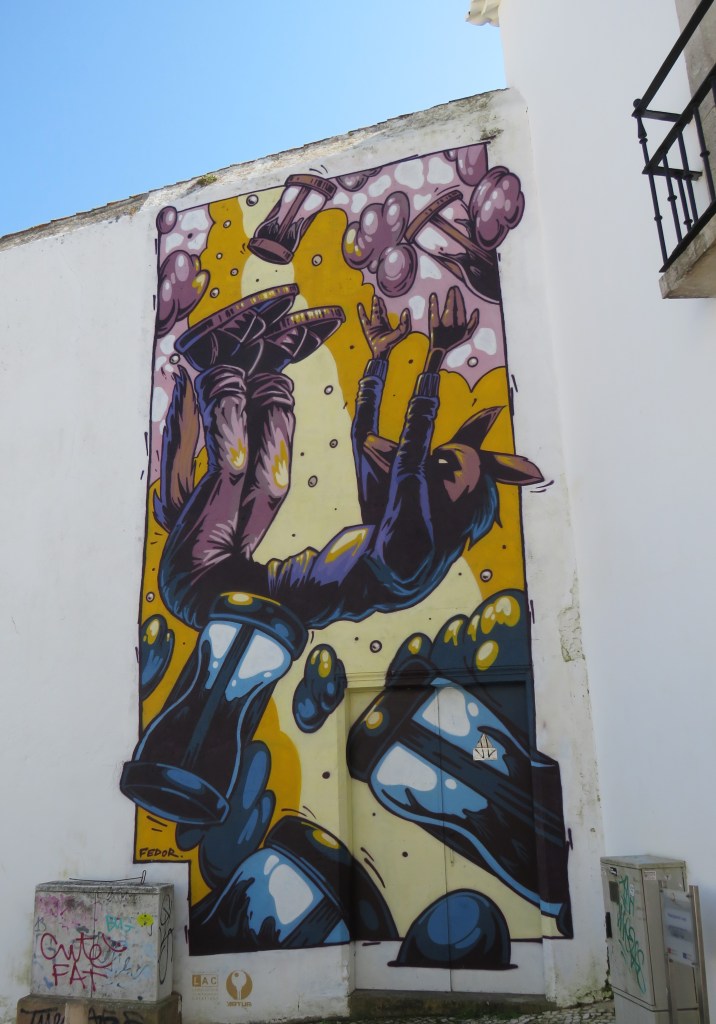 Since graffiti is a big problem all over Portugal, more and more cities and town are encouraging street art through street art festivals to try to clean up the graffiti problem. This is nice. I like it and I like the idea behind it.