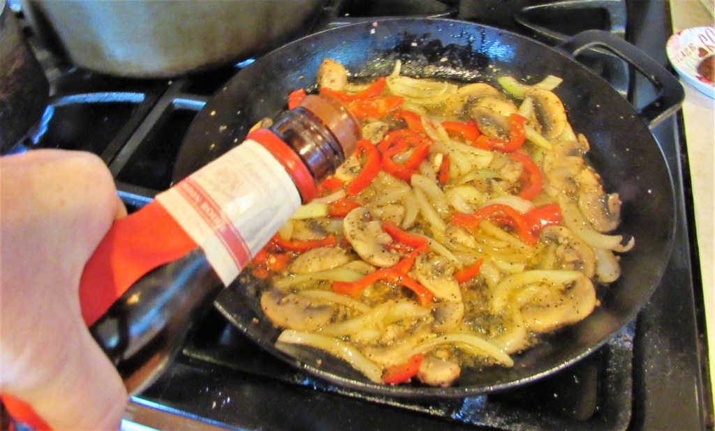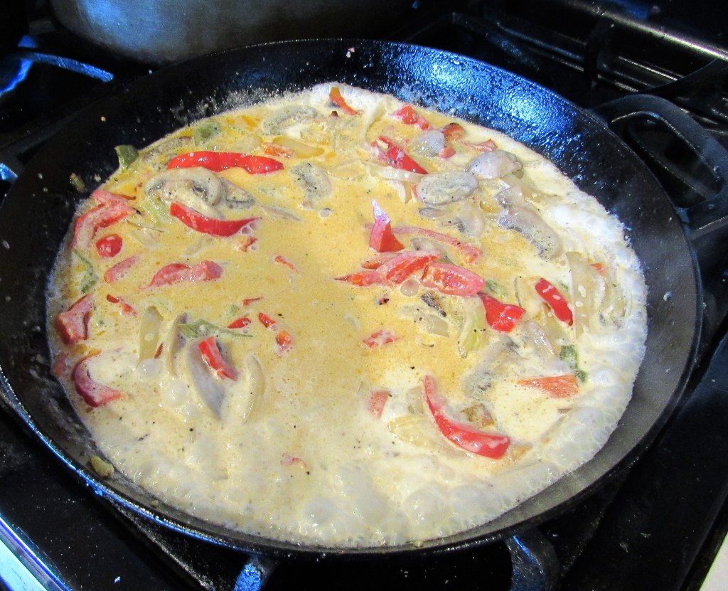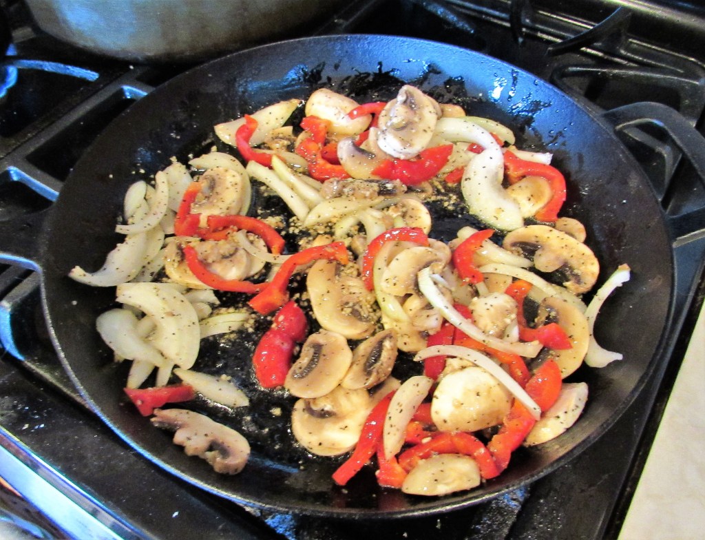 I love creamy sauces. They are a weakness of mine. So I decided to make my sauce a bold, creamy sauce, full of big, hearty flavors. I sauteed mushrooms, onions, red bell peppers and roasted Hatch chilies for the base, then added the Grand Marnier and cream to finish it off.