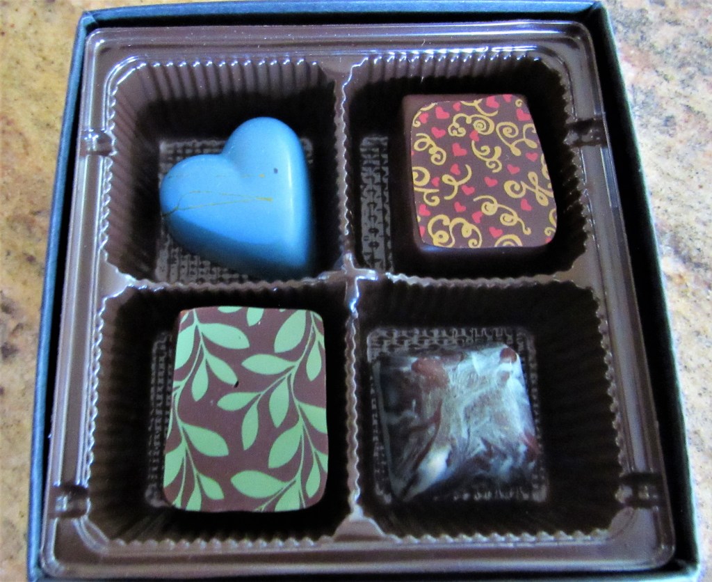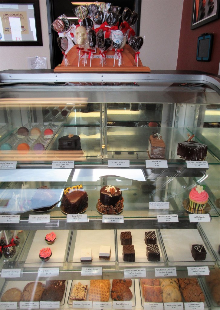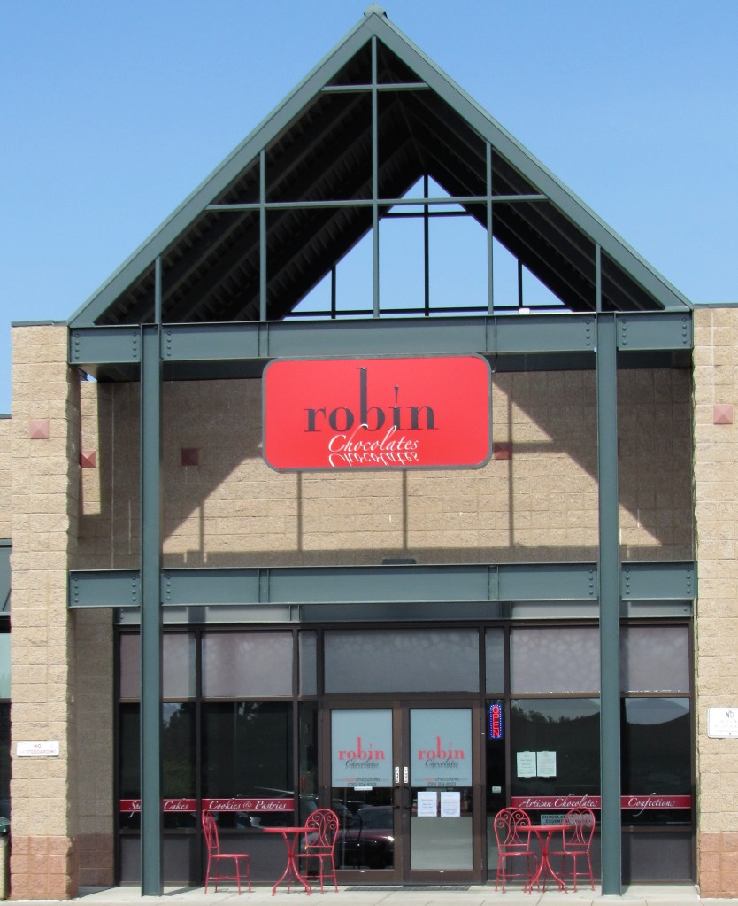 In Robin’s chocolate shop, Robin Chocolates, she has cases filled with her beautiful edible art. She has so many varieties and flavors too. Each one is a delectable, beautiful creation, and though I have not tried them all, the ones I have tried are out of this world. I guess that means I need to do some more research, since I can’t choose a favorite if I have not yet tasted all the samples.