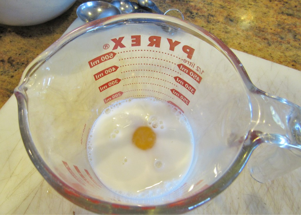 Whisk the egg and milk together then add to the flour mixture and combine just until everything is moistened.