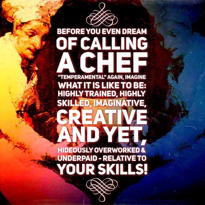 2. I am a trained chef and it’s an industry and a career l really do not miss at all! Creating for yourself is brilliant – but on a commercial or even an elite level, there is no joy. I was in catering for a good many years as a youngster but as l got olderl realised that it was one of those most underpaid jobs going – becoming a celebrity chef is not an easy step and you have to be a really hard bastard to become one and most chefs don’t want that hassle. Just gettin paid decently is enough for many and well guess what? Yep, doesn’t often happen.