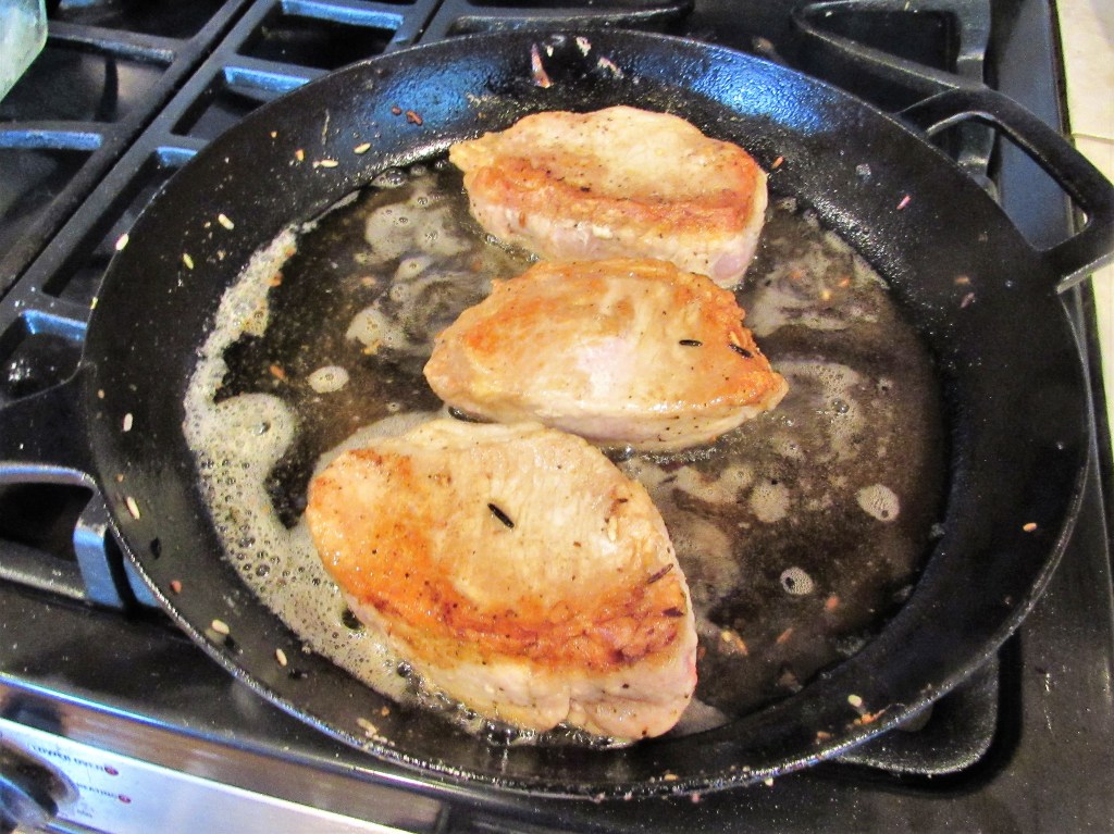 Then I made the sauce, which was very easy to make, and poured it over the pork chops.