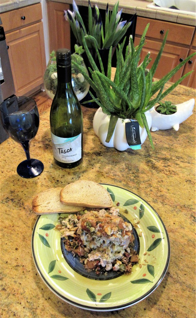 I had just a little bit of my spicy artichoke dip left the needed to be used up. Spicy Artichoke and Sausage Dip It was just the perfect amount to make some stuffed pork chops with. Lately, we have been buying a big pork loin and we cut our own pork chops from that. We like to make them nice and thick, which makes them just perfect for stuffing. I could have very easily just had the stuffed pork chops, but being the saucy girl that I am, I needed a sauce to add to the meat as well. I made a lemon, mint and caper sauce that went very well with the pork and the artichoke dip. To make the meal complete, I served it over a wild rice casserole with some warmed bread and a sparkling chardonnay. YUM!