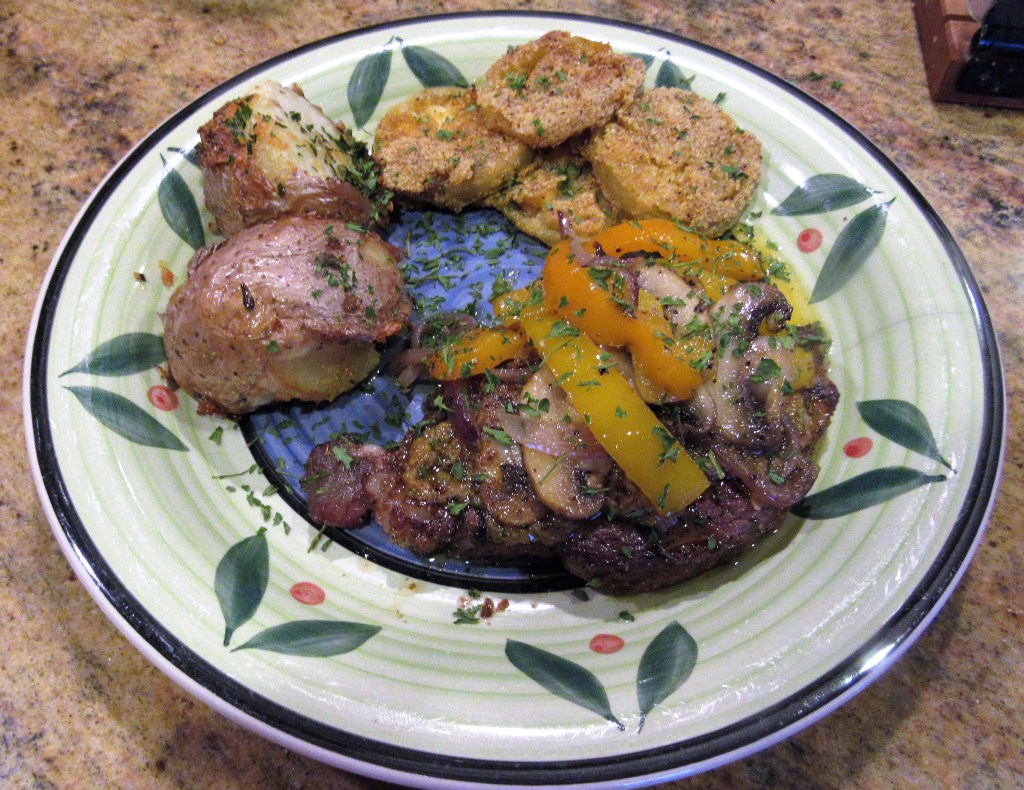 When I made my fried green tomatoes, I served them with my Southwestern steak The Secret is in the Sauce and some smashed red potatoes. Smashed Red Potatoes. Everything went together just perfectly. It was a simple, downhome, just plain good meal.