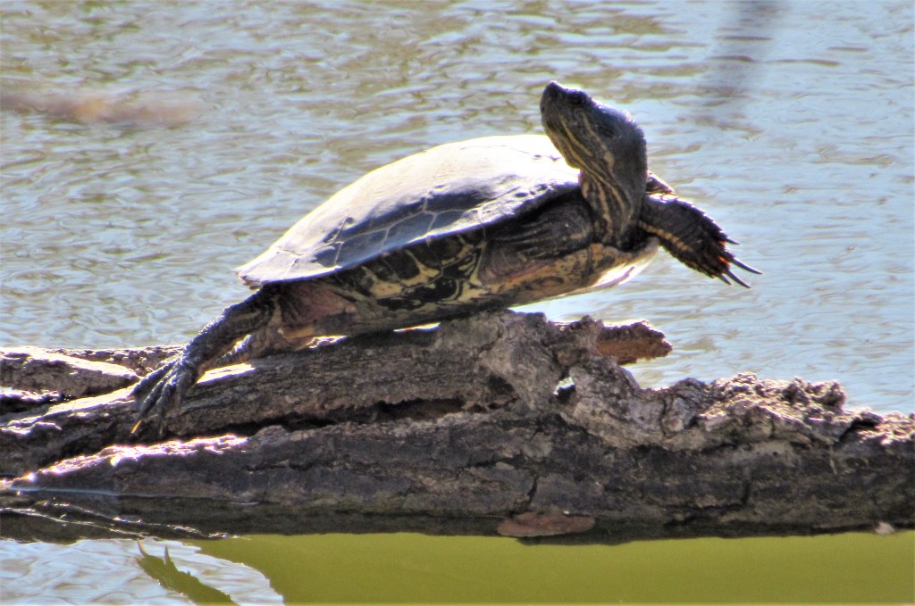 We still have that one turtle who is just as confused as the rest of us are. He still refuses to give up and loves to sun himself on his “log”, even though one of the lakes still has a thin layer of ice on it.