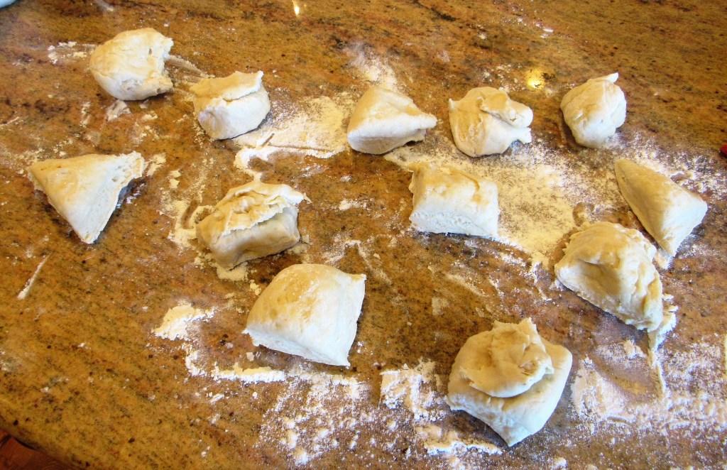 Once the dough has completed its first rise, punch it down and cut into 12 equal portions.