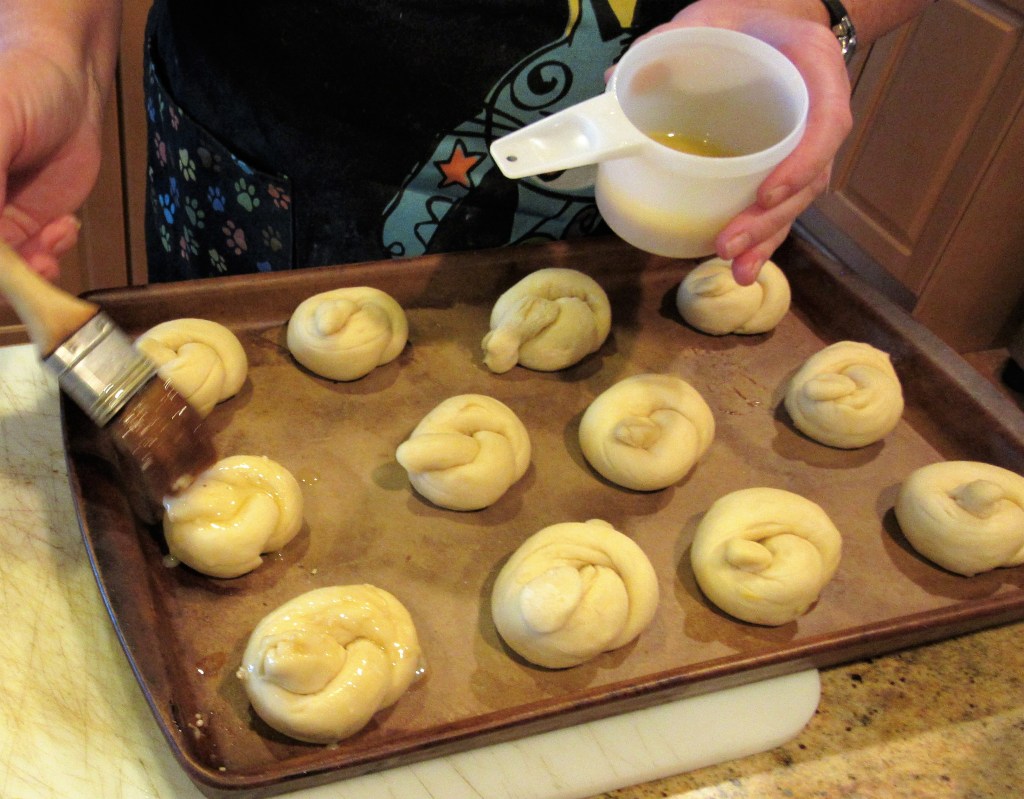 Once all the knots are made, place them on a baking sheet cover and let them rise again for another 1 1/2-2 hours.