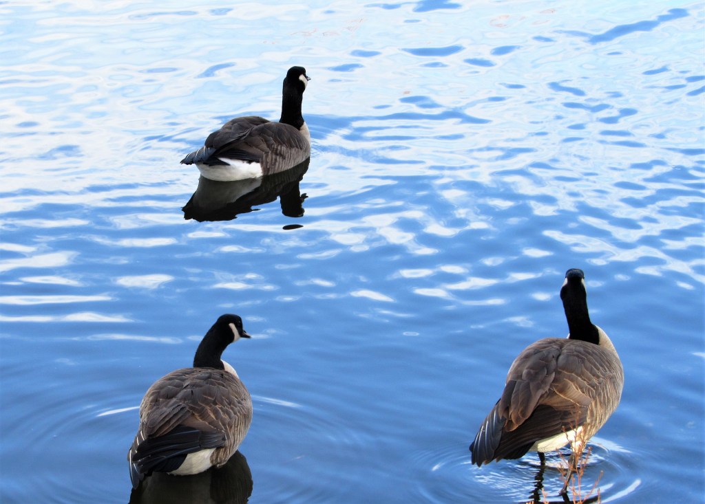 It was yet another beautiful, bright, sunny day, and yet another gorgeous day for a nice walk around the lakes. The ducks and geese were out today. Today’s walk was a little bit of duck, duck goose.