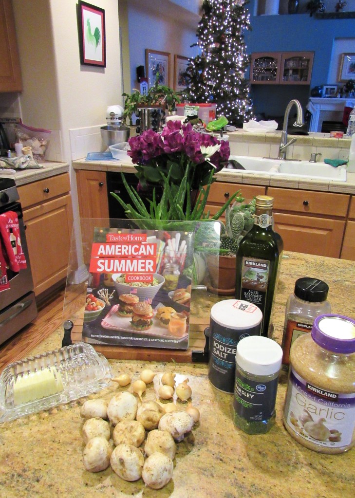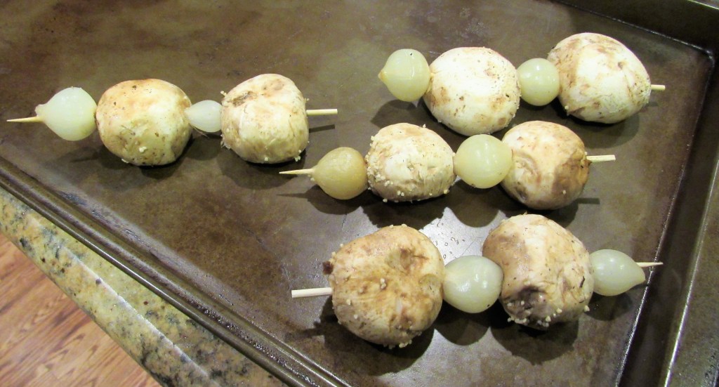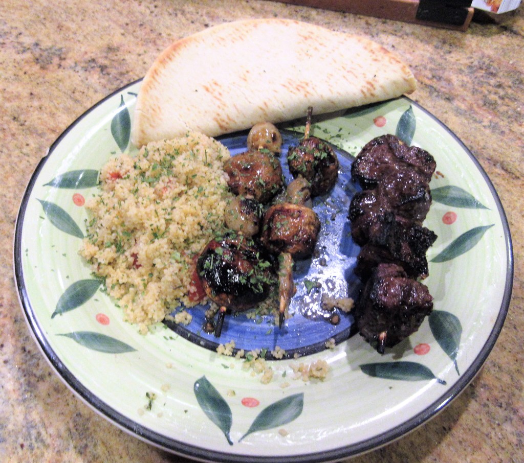 We had a long day of hiking around through the mountains yesterday, and when we came home, I just wanted to make something quick and easy-peasy for dinner. I had marinated some steak before we left, then cut them up and cubed them for kebabs when we got home. Dinner was a kebabed theme. I also made some mushroom and pearl onion kebabs to go with the meat. Everything went on the grill, and I served them with some couscous and pita bread and a smooth shiraz. Simple, easy-peasy and delicious. My favorite way to cook!