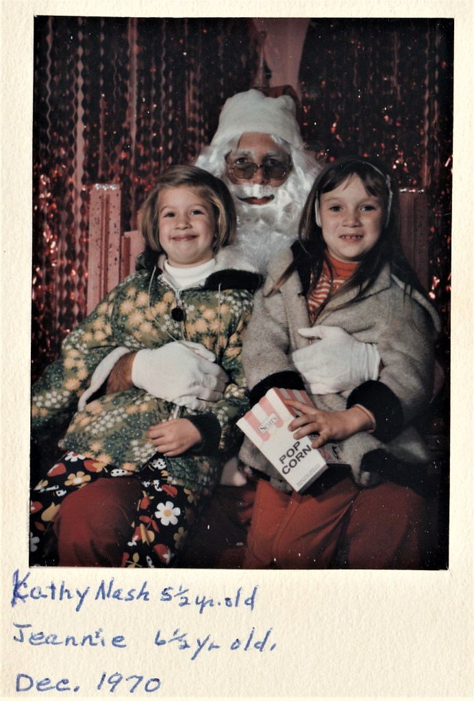 Visiting with Santa was a big part of my childhood. My “little sister” Kathy and I would go every year. Kathy and I have known each other our whole entire lives. We grew up right next door to each other and are exactly 1 year apart. This is one of those magical times.