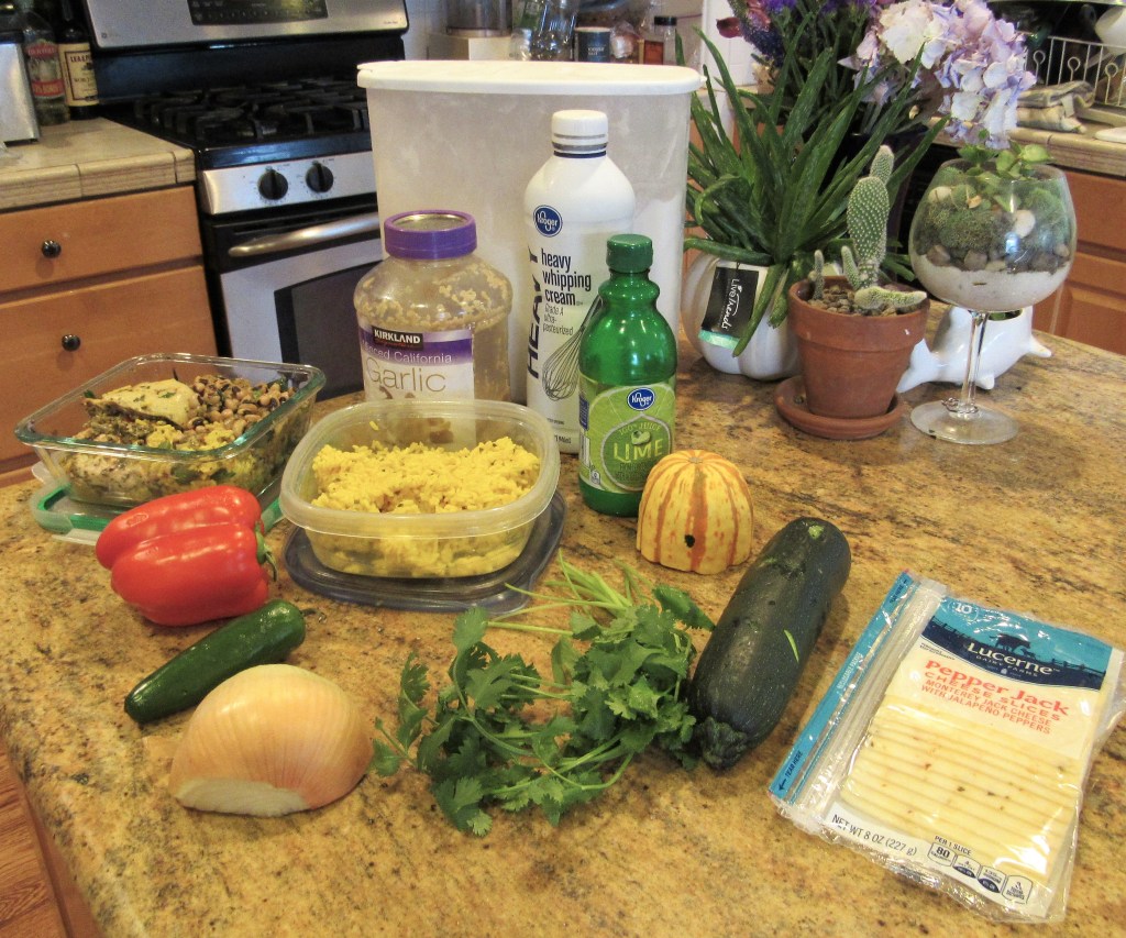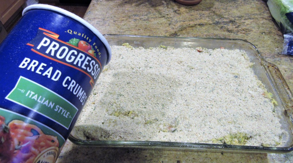 Other than my jalapeno-cilantro cream sauce, the whole dish was from leftovers of this and leftovers of that. The main ingredients were the rice, some of my black-eyed peas and chicken, all from our New Year’s feast. I also added some leftover vegetables, then made a jalapeno-cilantro cream sauce to bind everything together and topped it all with breadcrumbs.