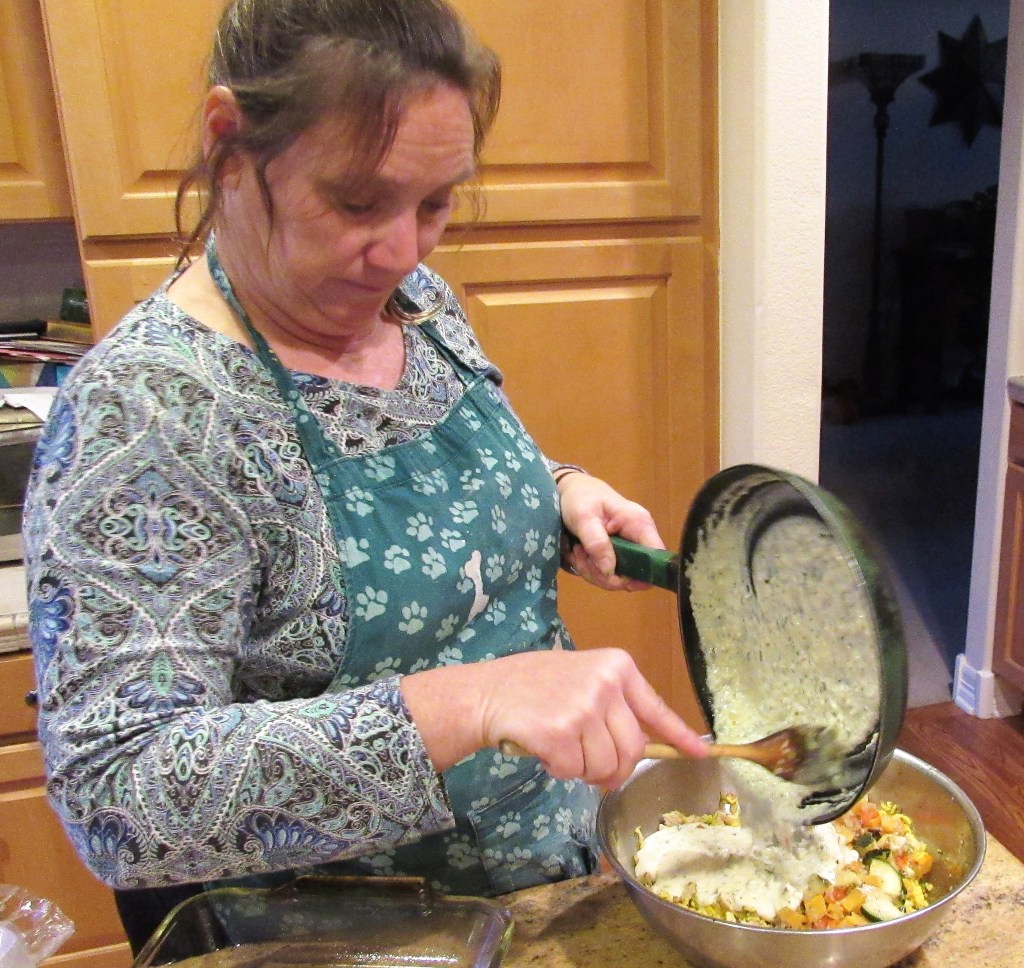 Once the sauce is made, combine it with the rice, chicken and vegetable mixture. (Had I have known I was going to be photographed, I would have dolled myself up a bit. ๐ )