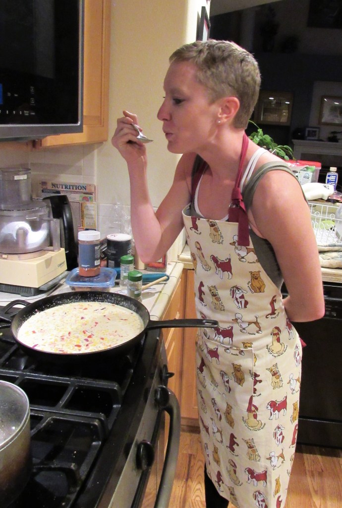 Elizabeth is tasting the final product to make sure all the seasonings and flavors are just right before we serve it over our tuna steaks.