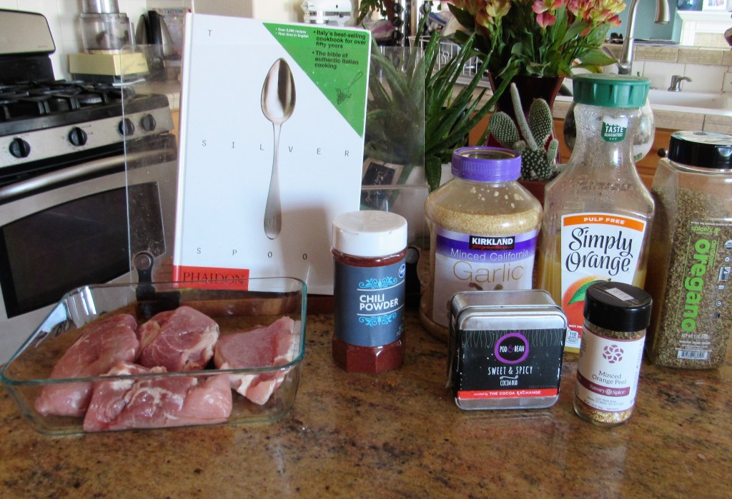 The orange is one of those things that add so much to a wide variety of dishes – for example, this pork dish, and in contrast, a cranberry salad I make every Thanksgiving. I was never a big cranberry fan, but this salad, with chopped oranges, and especially the grated orange rind, changed all that.