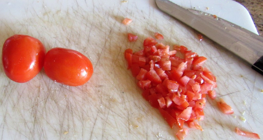 3-4 tomatoes, diced fine – any kind of tomatoes will do