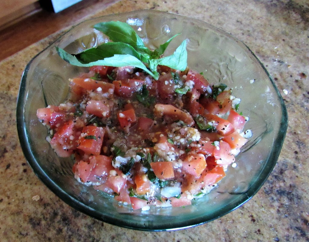 I love a good, simple bruschetta with fresh tomatoes. It just seems to go with everything.