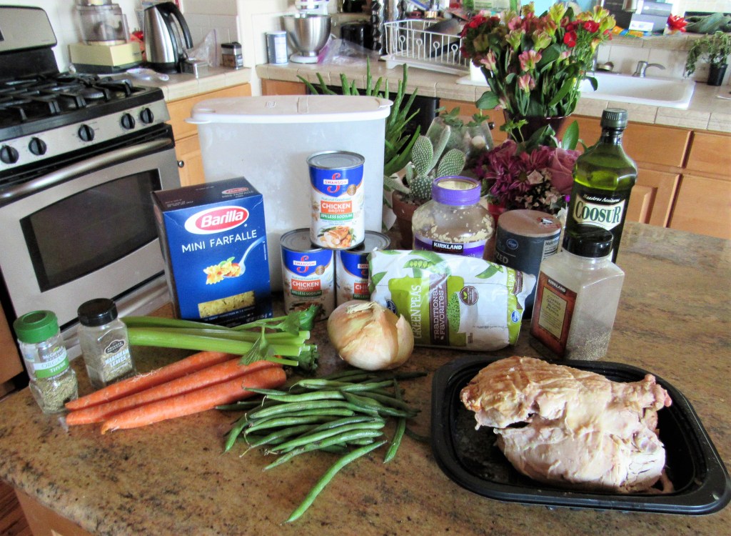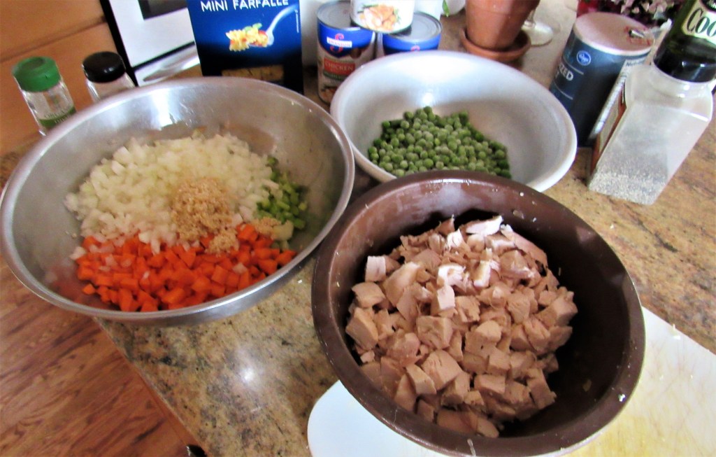 We had a leftover rotisserie chicken form Costco, so I cut it up and put it in the soup. Then I made some more chicken broth from the bones. I use a lot of chicken broth, so I always have some on hand, whether it is my own or from a can.