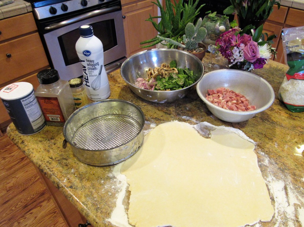 This time I made my quiche with ham, of course, spinach, mushrooms, garlic and shallots.