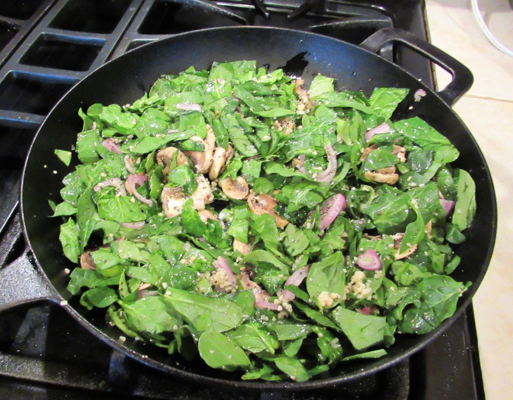 I cubed the ham, then sauteed the spinach, mushrooms, garlic and shallots with salt and pepper.
