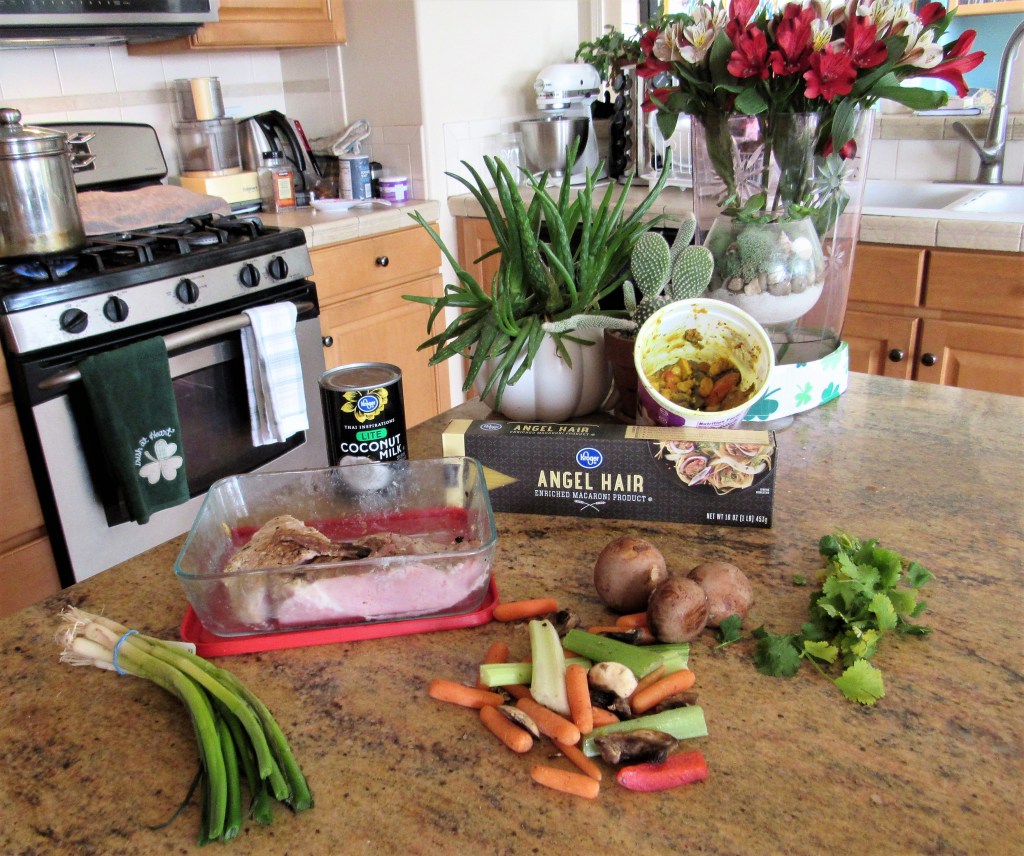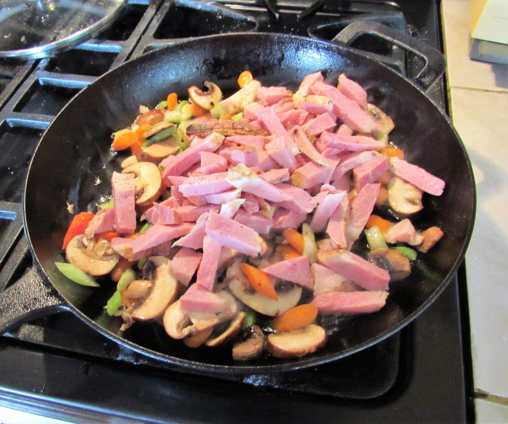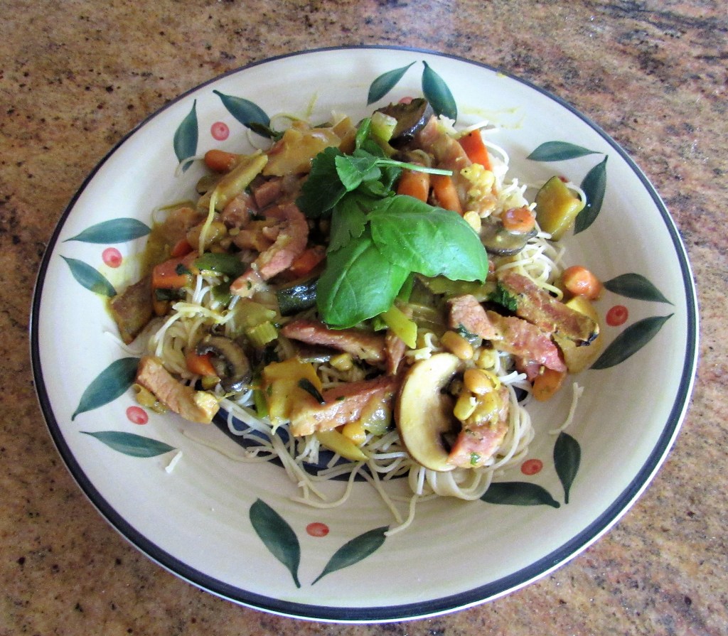 It was time to clean our the fridge again, so once again, I invited my dear friend, the “Queen of Leftovers” to come help out and offer some inspiration. This time around, I had some ham, vegetable casserole An Irish Vegetable Casserole and some cut vegetables from when we had our Carnivores’ Gathering A Carnivores’ Gathering. Since the vegetables already had curry-like seasonings, it was real easy to make the whole meal a curried meal. All I had to do was cook up some pasta and add some coconut milk and throw it all together. The rest was already cooked. We had a great meal and now I have more room in my refrigerator for the next round of leftovers. 🙂