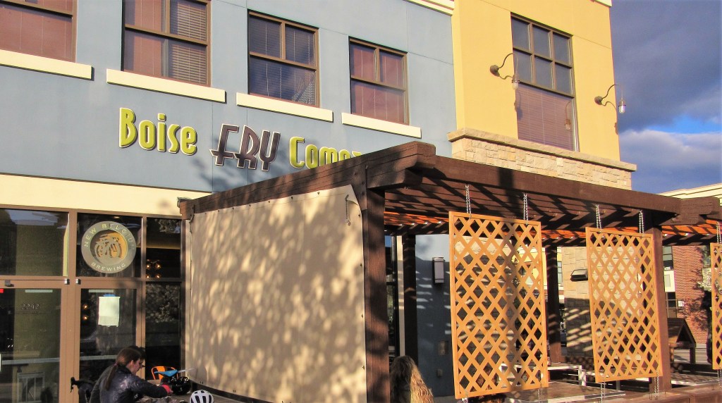 The Boise Fry Company is very friendly to bicyclists and dogs alike. The decor is a bicycle theme, using a lot of old bicycle parts as well.