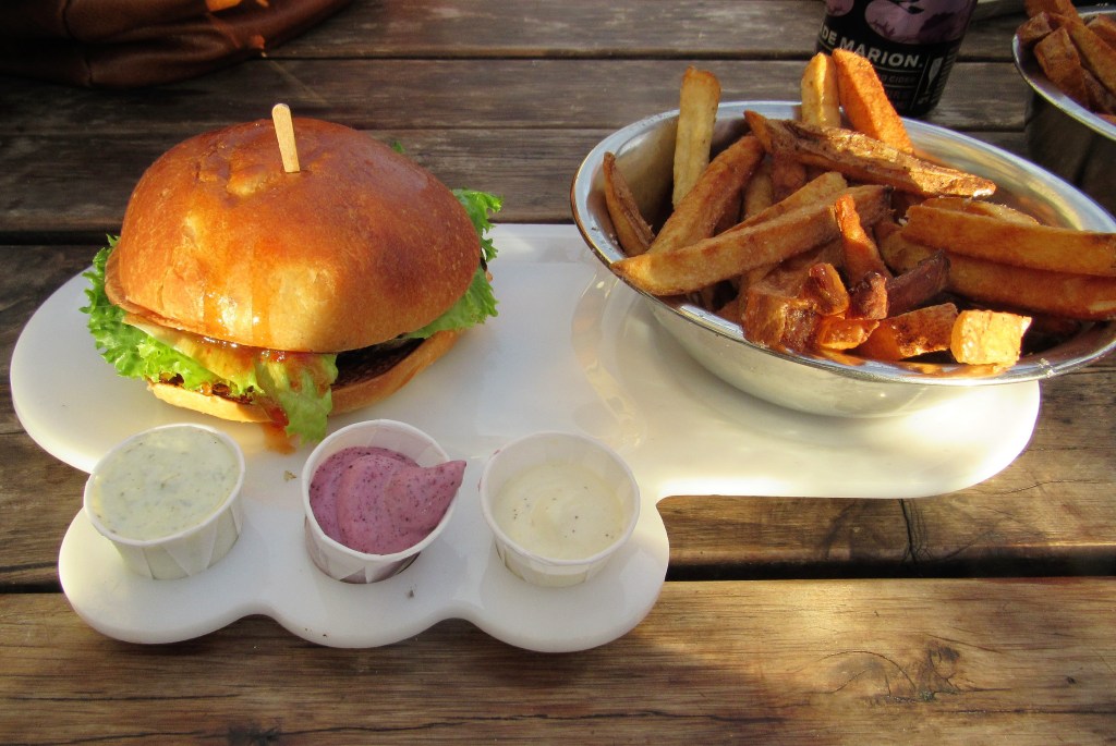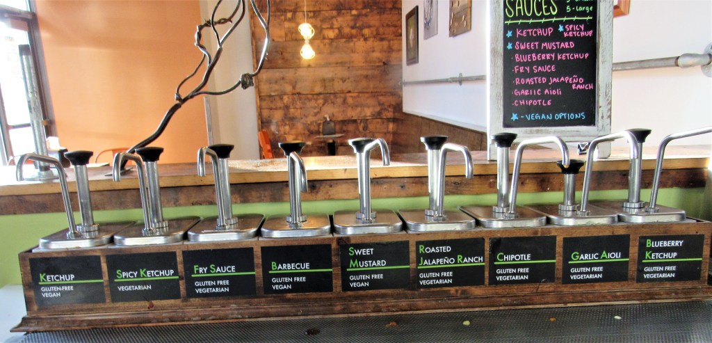 Your burgers can be bison, beef or vegan. It is your choice. The bison is all natural and grassfed, from Brown’s Buffalo Ranch in nearby, Nyssa, Oregon. (One of the many things we learned on this trip is that where Scott and Traci live, they are only about 30 miles away from the Oregon border in one direction and about the same distance from the Nevada border in another direction.) The beef comes from The Double R Ranch, in Boise. The vegan burgers are all handmade from scratch, using black beans, red quinoa and a mixture of various herbs and spices. The buns are brought in from a local bakery, Gaston’s Bakery.