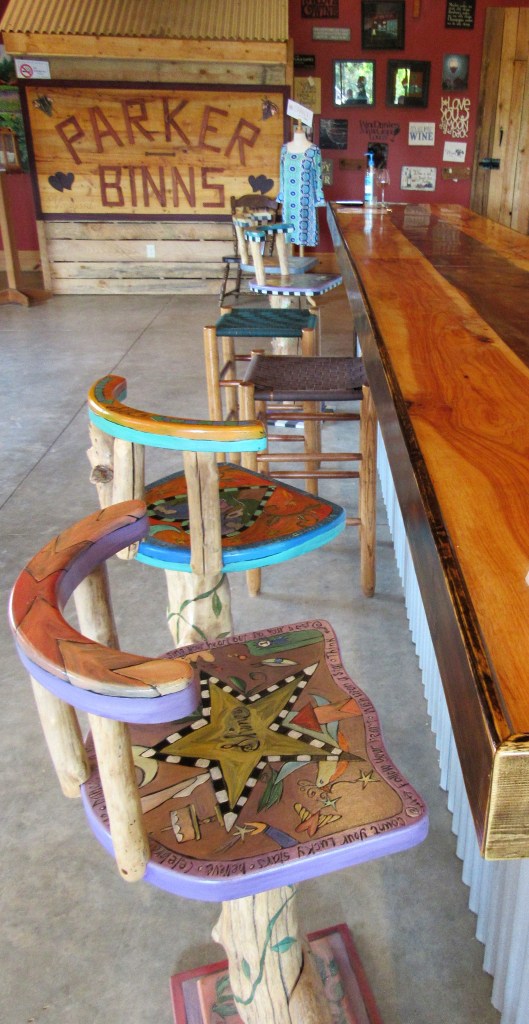 The wooden carousel animals are grandma’s personal animals that she grew up with and decided to add to the winery for a bit of fun and character. These are on the outside patio, but you can sit anywhere you like. There is even a fire pit or two if you would prefer to sit there instead.