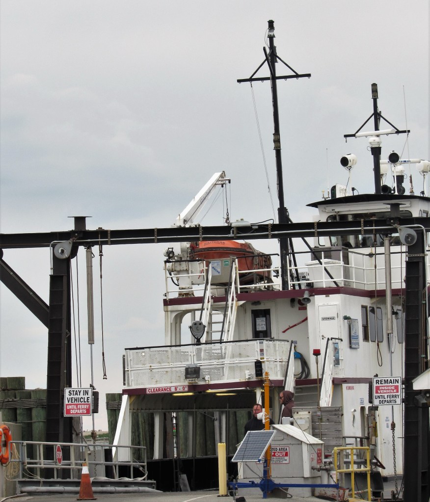 Getting onto the ferry at Hatteras Island. This ferry ride took a little over an an hour. We were headed to Okracoke Island. Once on Okracoke Island, we took another ferry to get us back over to the mainland. That ferry took about 2 1/2 hours. We even saw some dolphins on that part of the journey, but they were too fast and I could not get any pictures of them.
