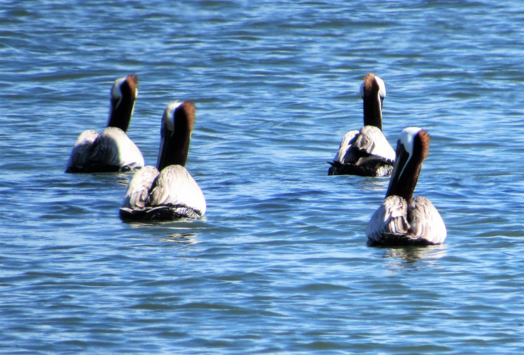 These are brown pelicans, unlike the American white pelicans we have here at home.