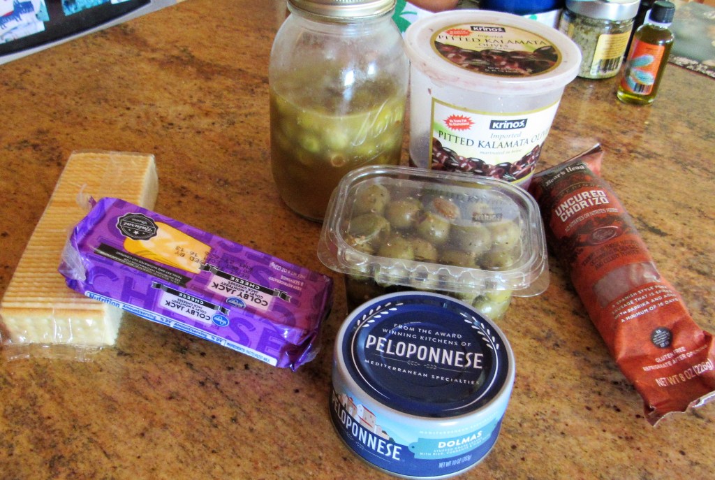 I think I told you I have a women’s group I have been meeting with every Monday for a few months now. We changed the time to accommodate my new schedule, and lately it has been at my house. Well, it’s too hot to cook anything, so I made an antipasto tray. However, due to some last minute changes, it did not happen today. That’s OK. I had already made my antipasto platter. I will just put everything away or maybe recreate it into something for dinner.