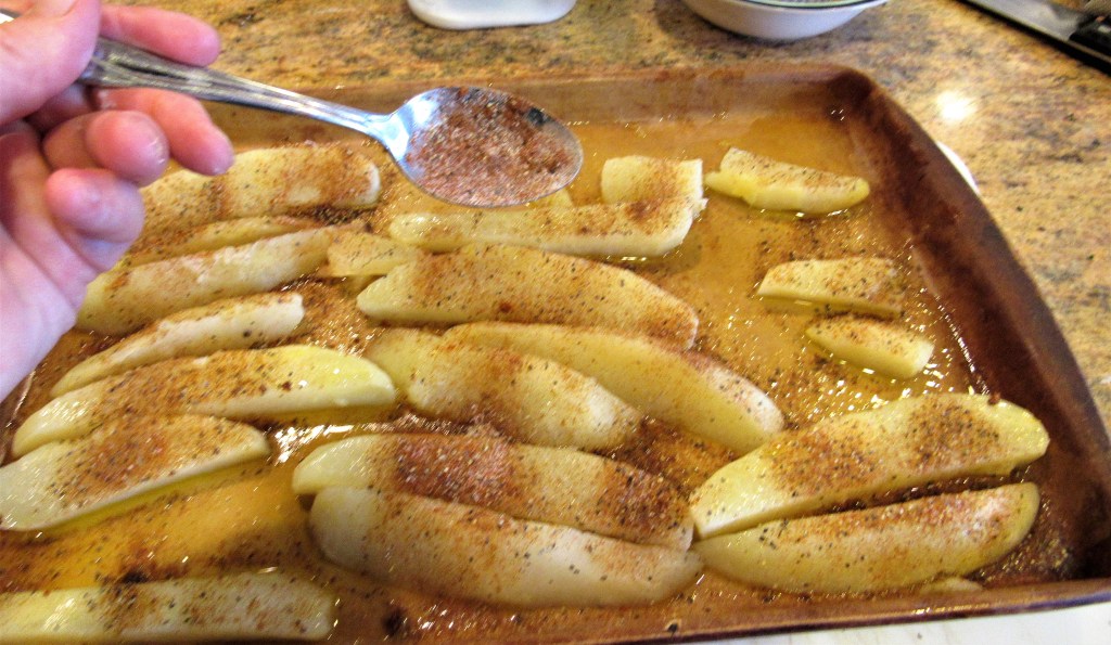 When the potatoes are ready, drain them and pat them dry with a paper towel. Mix all the spices and salt and pepper together. Drizzle olive oil over the potatoes then sprinkle the spice mixture over the potatoes. Roast in the oven for about 20-30 minutes, or until they are golden and crispy. Turn the potatoes after about 10 or 15 minutes to ensure even cooking and browning.