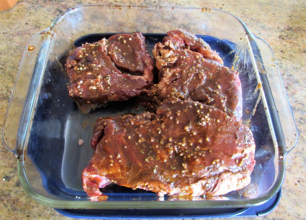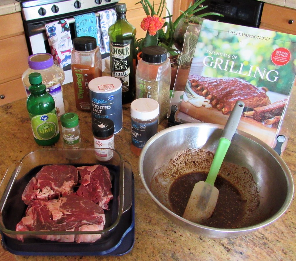 We LOVE steaks at our house. Larry grew up in Kansas, which is cattle country, so we eat a lot of steak. Because we eat a lot of steaks, I am always looking for new and exciting ways to fix them too. I mean after all, life would get VERY boring indeed if we ate it the same way all the time, every time. This time, I gave our steaks a South of the Border personality and marinated it in spicy, zesty adobo sauce.