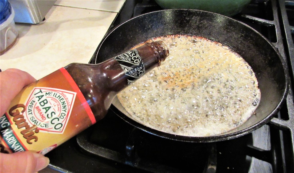 While my asparagus was cooking, I mixed all the ingredients together, except for the parsley, lemon zest and pine nuts. Brown the butter slightly to give it a bit of a nutty flavor. When the butter is melted, add the Tabasco sauce and the lemon juice. Any variety of Tabasco will do.