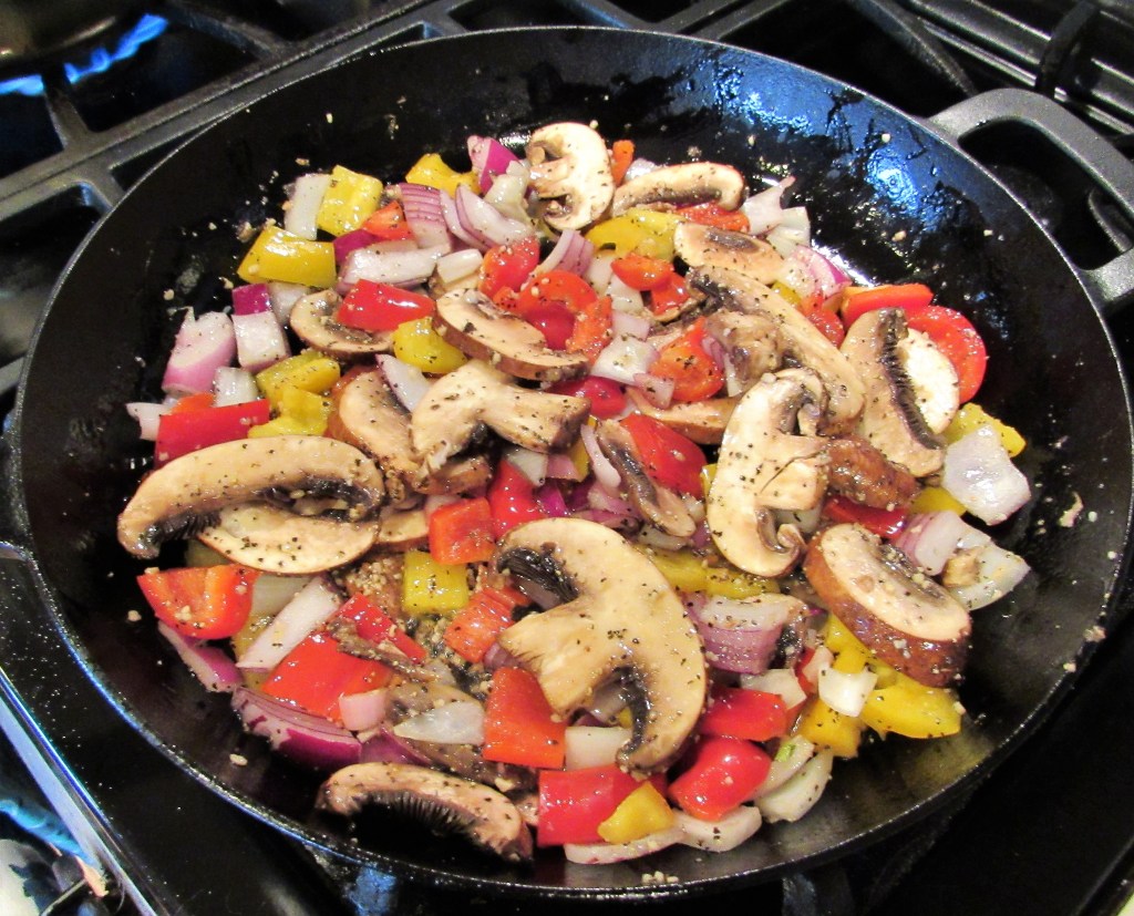 I sauteed the vegetables first in olive oil with just some light seasonings. I did not add the tomatoes until the very end though, since I did not want them to break down. Once the vegetables were done, I removed them from the skillet and set them aside so I could cook the shrimp.