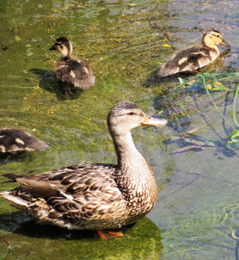 I took a nice walk around my lakes today before it got too hot. For the most part, the lakes were pretty quiet. I think it because the changing of the seasons are upon us. But and lo and behold, I was very pleasantly surprised by what I saw. I had to do a double take. We still have ducklings! It’s very late in the season to still have tiny baby ducks, but sure enough, Momma was out with her babies. They were having a swim lesson today. There was mom and her 3 babies all out enjoying their day. They are green-winged teals.