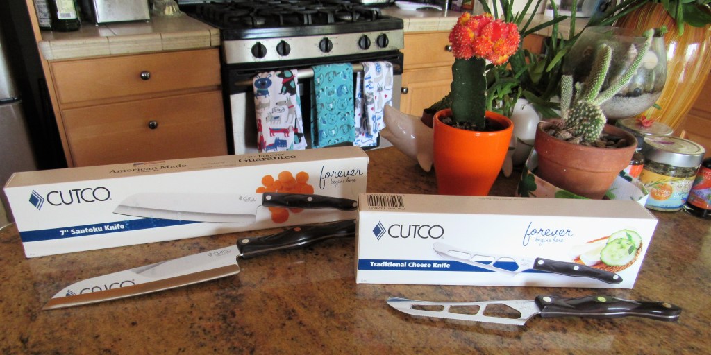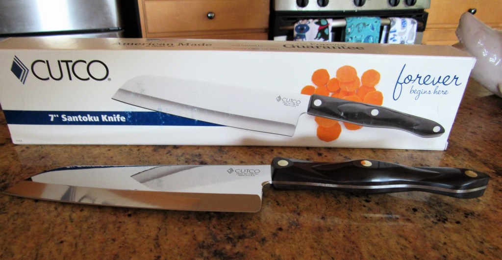 I bought a couple of new CUTCO knives yesterday. CUTCO knives are very good quality, lightweight knives that are guaranteed for a lifetime. Of course I already have a lot of very good Henckle knives, but believe it or not, most of them are over 20 years old. They still work absolutely fine, and I still use them everyday, but that doesn’t mean I can’t spruce things up a bit too. My Henckles are good quality German steel knives and I love them. The German steel though is considerably heavier than the steel used in my new knives. Because I am so used to my heavier steel, it may take a little while to get used to my new lighter blades, but I am sure I can manage. 🙂