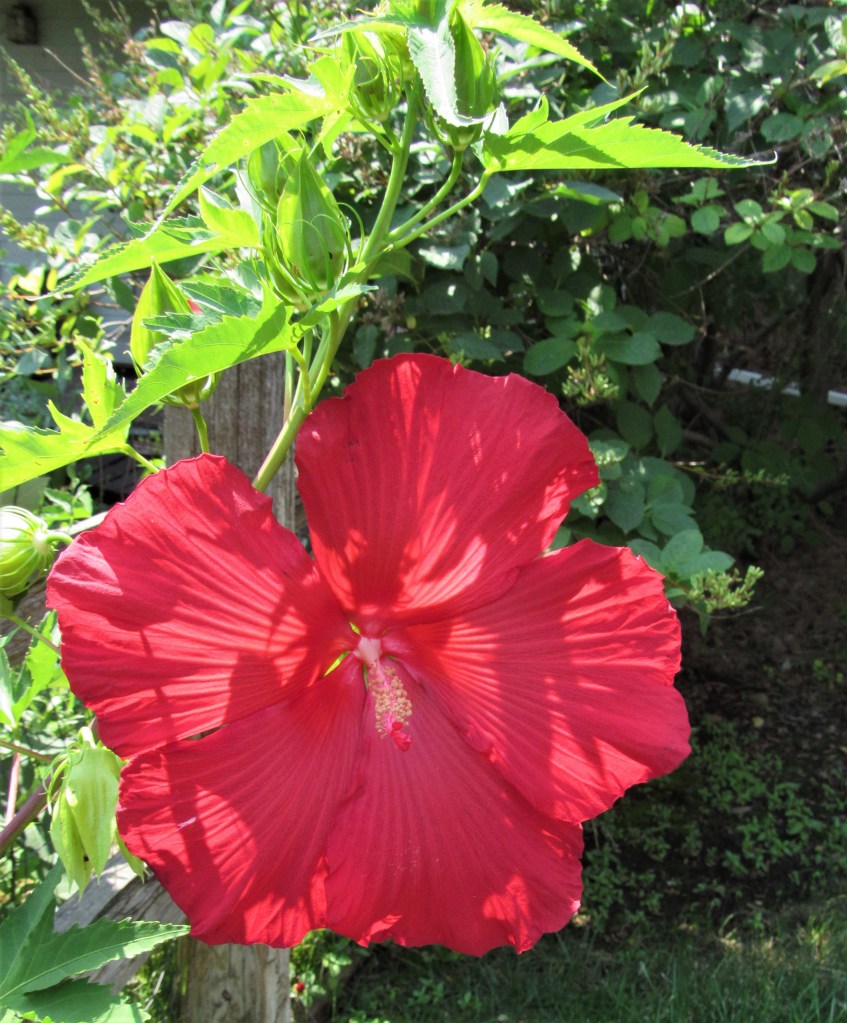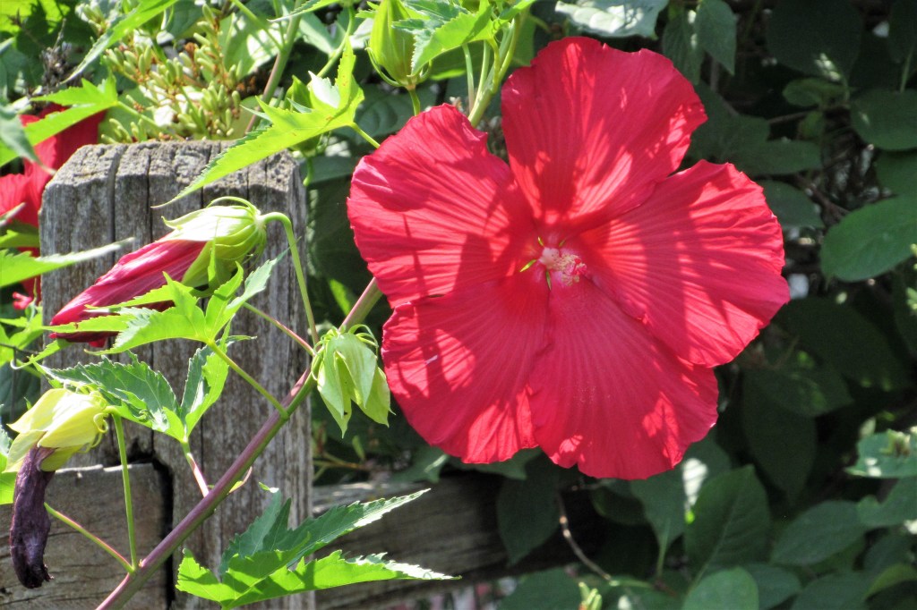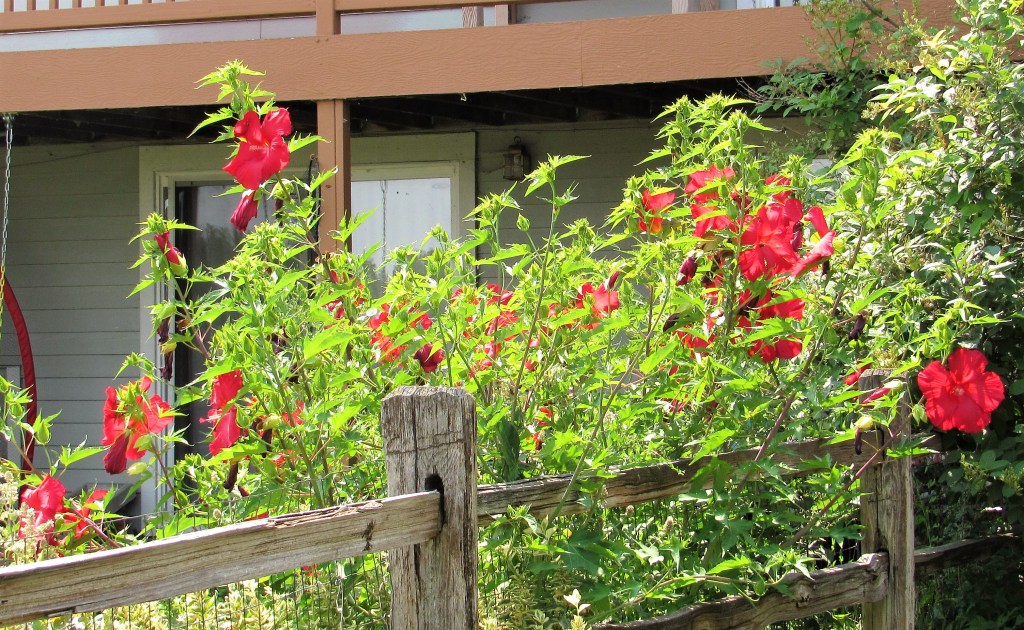 For whatever reason, we tend to have more yellow and purple flowers than red, so these big red flowers, that I believe are hibiscus, just really stood out to me and caught my attention.