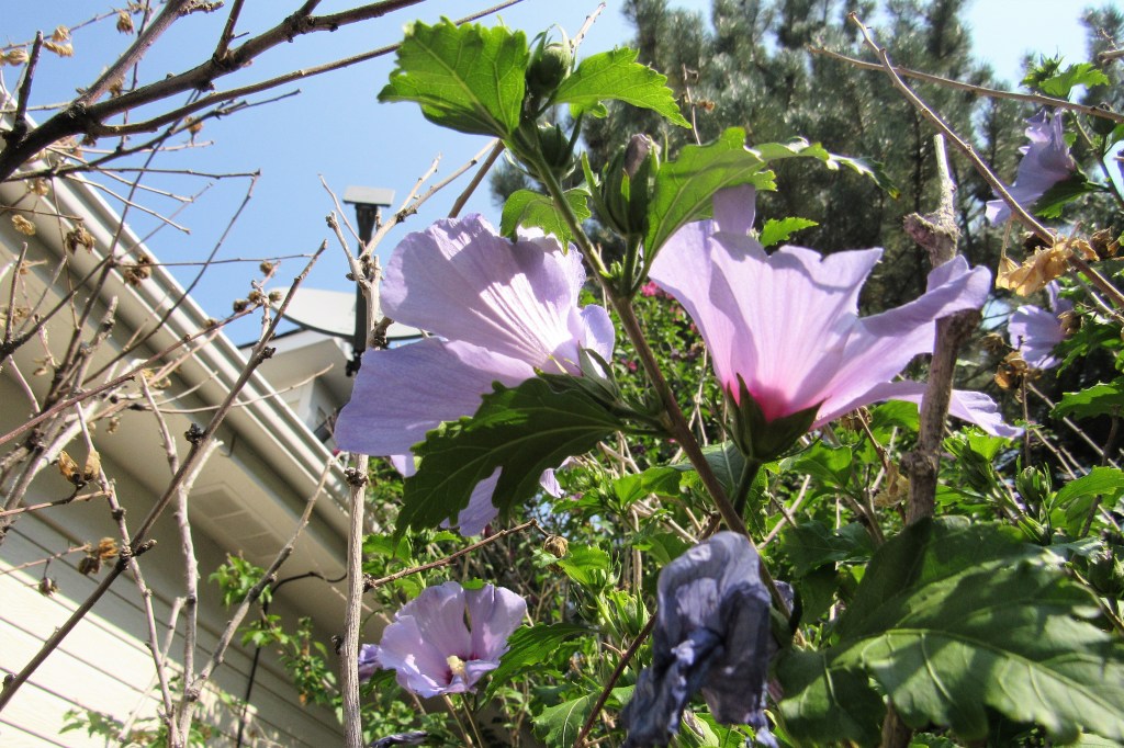 There are still lots more flowers coming your way. I look for them everywhere I go. Sometimes you have to look down, and sometimes, you have to look up, and sometimes you have to look all around, but they are there, just waiting to be noticed. These purple beauties are more tree flowers from my neighbor’s yard.