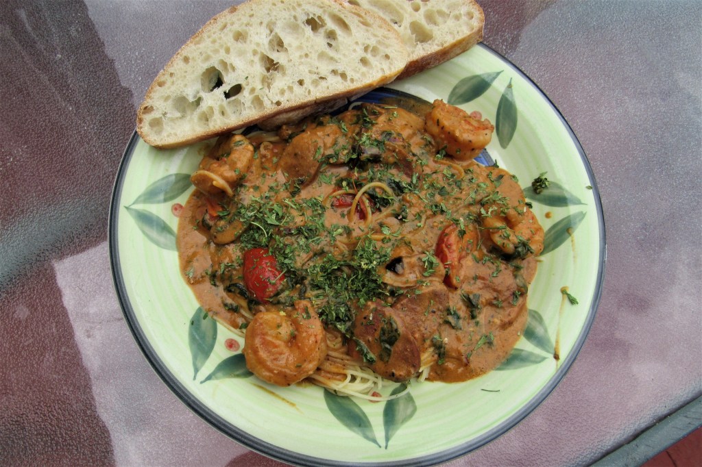 Mediterranean Shrimp and Chorizo Pasta with Creamy Pumpkin Sauce