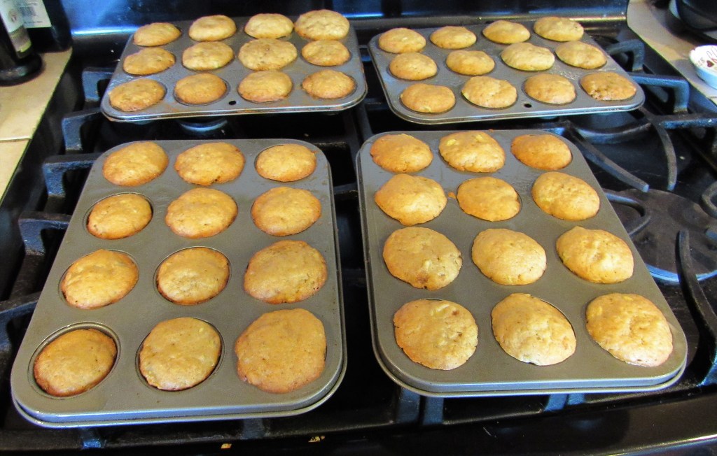 The mini banana muffins were very popular. One girl just couldn’t get enough of them today. I told her just to put them in the plastic water cups so she could take them with her. She was more than grateful for that idea. I did not put any nuts in them this time, which might have been another reason why they went so fast. They all quickly disappeared, as did everything else, which tells me they were a success. I will keep on making things as long as people want them. 🙂 It feels so good to be needed and loved, even if only for my muffins.