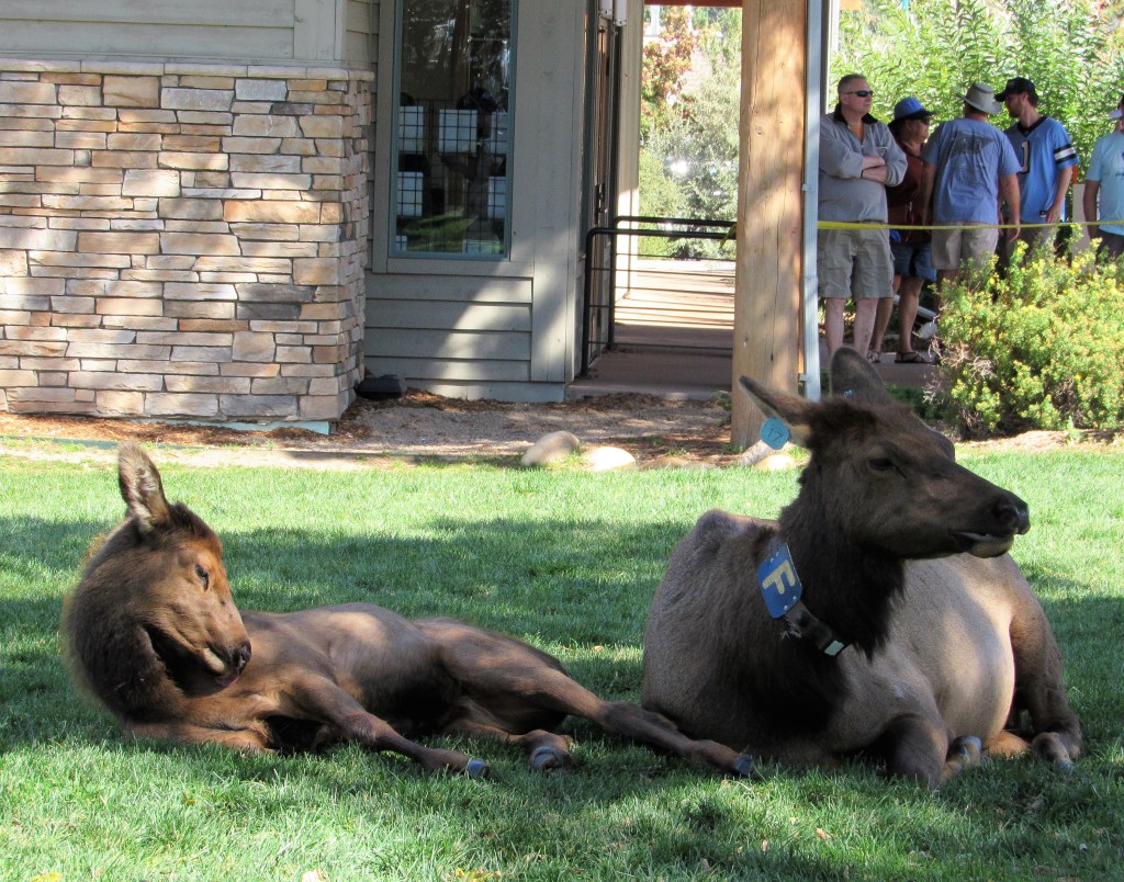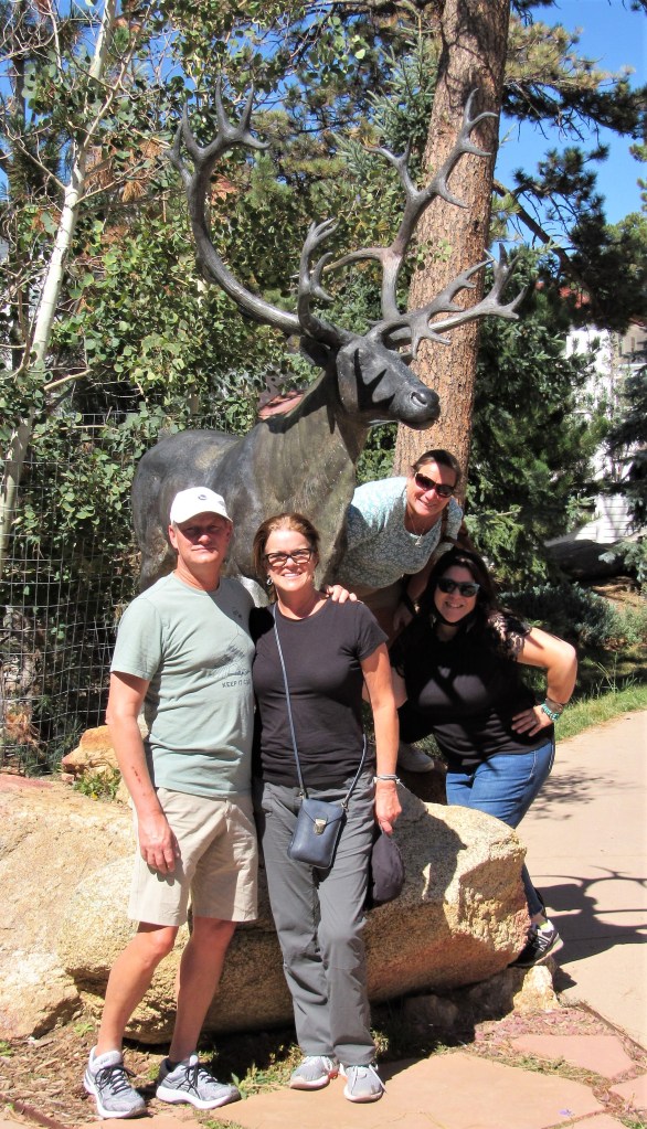 We took our guests up to Estes Park in hopes of seeing all of the above, and that we did, in abundance. Most of the elk we saw were hanging out at the golf course today, although some were a bit more shy, and preferred to be communing more with nature under the shade of the hilled trees just above. As beautiful and spectacular as the Stanley Hotel is, we were all far more excited about seeing the elk.