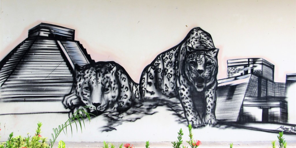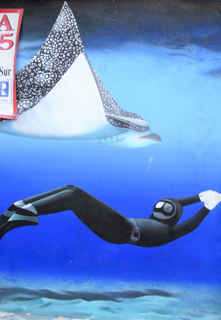 I told you awhile ago that I had a lot of good stuff from Cozumel, but I put it on hold for a bit because of our company from California and our fun reunion activities and adventures. Sadly, everyone has now gone home though. But, I can still share a lot of fun things with you from Cozumel. I would love to share my pictures from underwater with you, but unfortunately my underwater camera died on my second day of diving and I haven’t had the time to see if any of the pictures I took are salvageable yet either. So instead I will share some of the fun and colorful artwork from Cozumel. The walls are speaking.