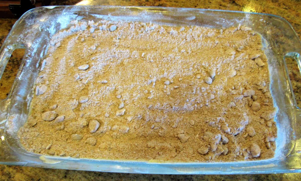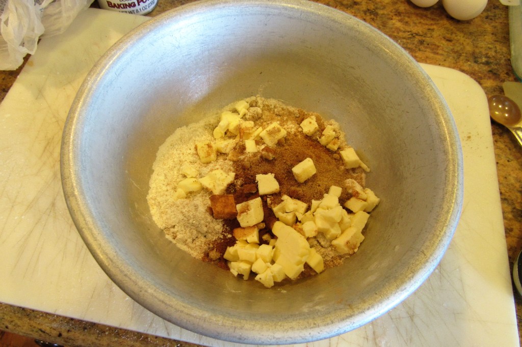 Mix everything together until it resembles course sand or crumbles. You can use a pastry cutter or your hands. I prefer using my hands.
