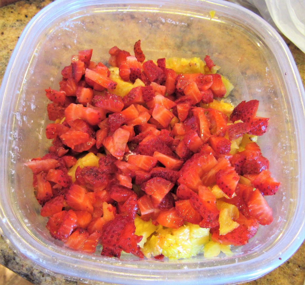 about 3 cups of fruit of your choice – I used strawberries and pineapple this time