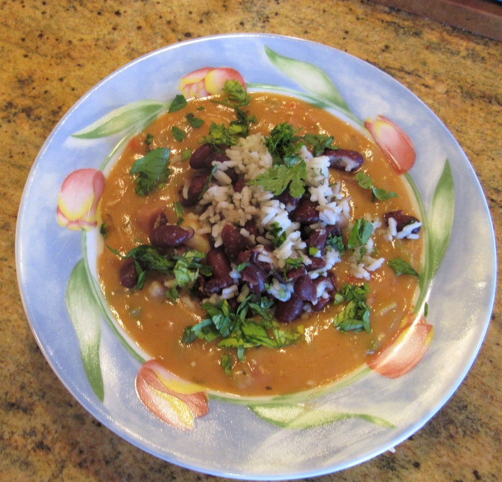 When everything was ready, I served it all over some red beans and rice and topped it all with some fresh parsley, and then it was time to let the good times roll; laissez le bontemps roulez!