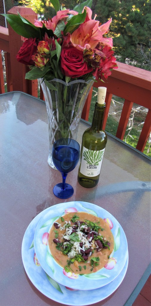 I was in a gumbo kind of mood the other day, and like I always do when making it, I made a big pot of steaming gumbo. I loaded it up with shrimp, Andouille sausage and chicken. Of course I started off with the Holy trinity, or as I like to call it, the Holy trinity +1, because I usually add jalapenos or peppers too. But the roux is glue that holds all theses savory ingredients together. The roux is what really determines the outcome of your gumbo. There are different kinds of roux, just like there are different kinds of gumbos. I served my gumbo with red beans and rice with a cool, some warmed cheddar and jalapeno bread and a crisp citrusy chardonnay on the side.