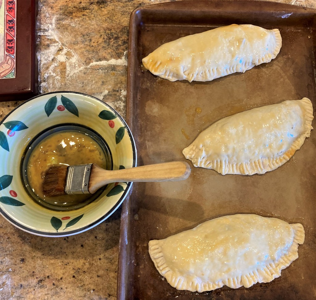 Usually I like to pan-fry my empanadas, but since this is a yeast dough, I baked them instead. Empanadas are made with just about anything you like, from sweet to savory, and I make them in many different ways all the time.