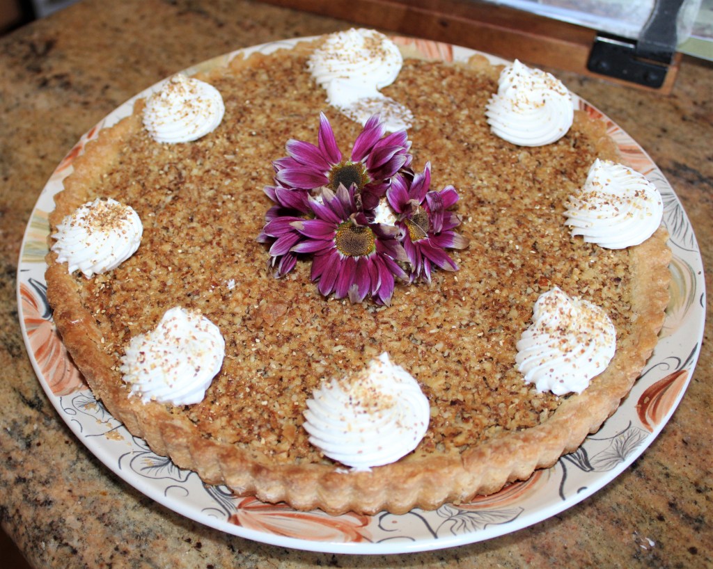 Allow the tart to cool slightly before removing it from the pan, then allow it to cool completely before adding the whipped cream. I added a little lemon zest to my whipped cream as well, but this is optional.